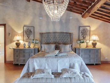 On this ten-couple tour, you’ll stay in a sumptuous villa just 6 kms from Lucca's city centre. Our home base is a 10 bed/10 bath renovated 15th century Tuscan country villa. Each suite has individual AC and private ensuite. The property is equipped with wifi, a small gym, large pool, olive grove, multiple indoor and outdoor seating areas, and ample parking.